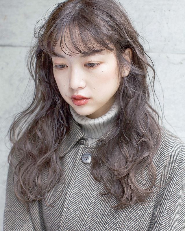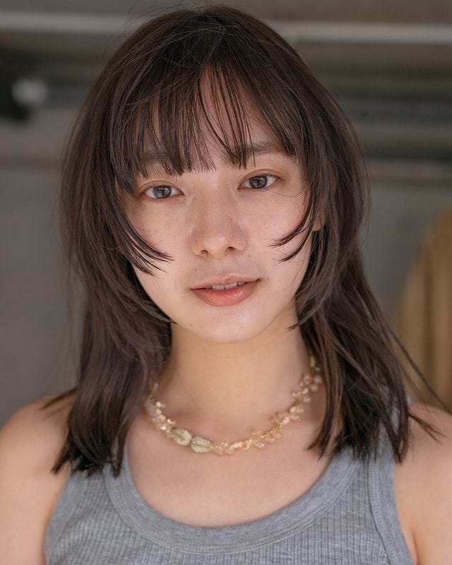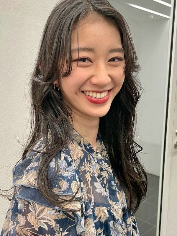 長めの前髪を人気の透け感をつけておろしているので、小顔効果も高いですよ。