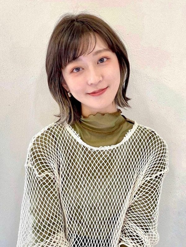 前髪なしのウルフカットは縦長のラインを作りやすいので、エラ張りが気になるベース型の30代女性によく似合う髪型です。