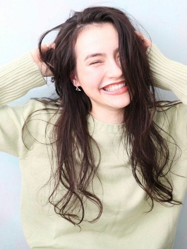 縦長ラインを作ってベース型の輪郭をカバーしたいという30代のエラ張りさんには、前髪なしのロングやセミロングもおすすめです。