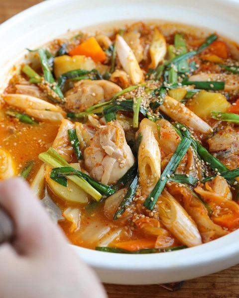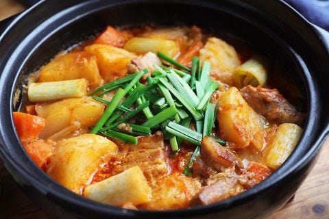 こちらは鶏肉とじゃがいもを入れて作る鍋で、韓国料理風のピリ辛味がやみつきになる美味しさです。