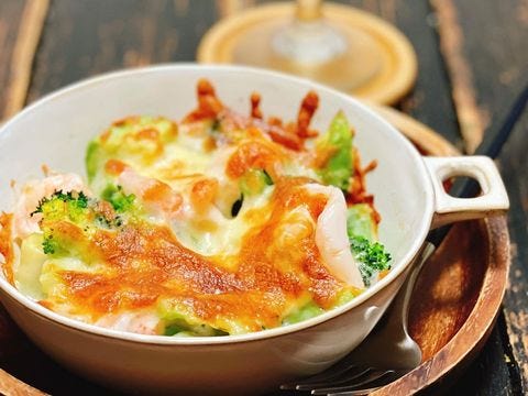 こちらはアボカドとエビとブロッコリーにスパイスソルトを絡め、チーズをのせて焼き上げる人気料理です。