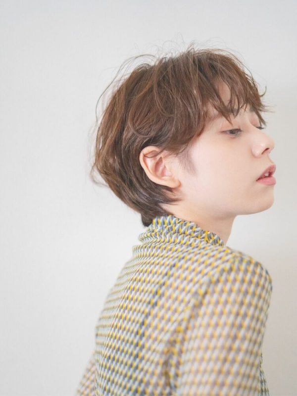 長め前髪のパーマをかけたショートは、エアリー感たっぷりで毛量多い人にも似合いやすい大人っぽい髪型です。