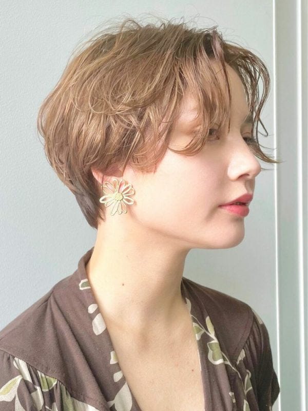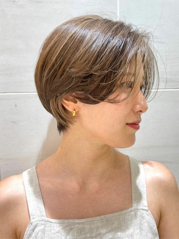 明るめカラーで軽やかさを演出したショートは、毛量多めの大人女性にぴったりです。