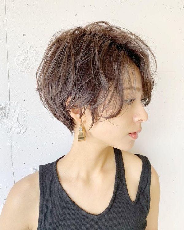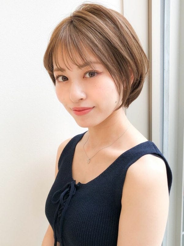 丸く見えるようにカットされたショートのため、毛量多めで小顔に見せたい方にもおすすめの髪型です。