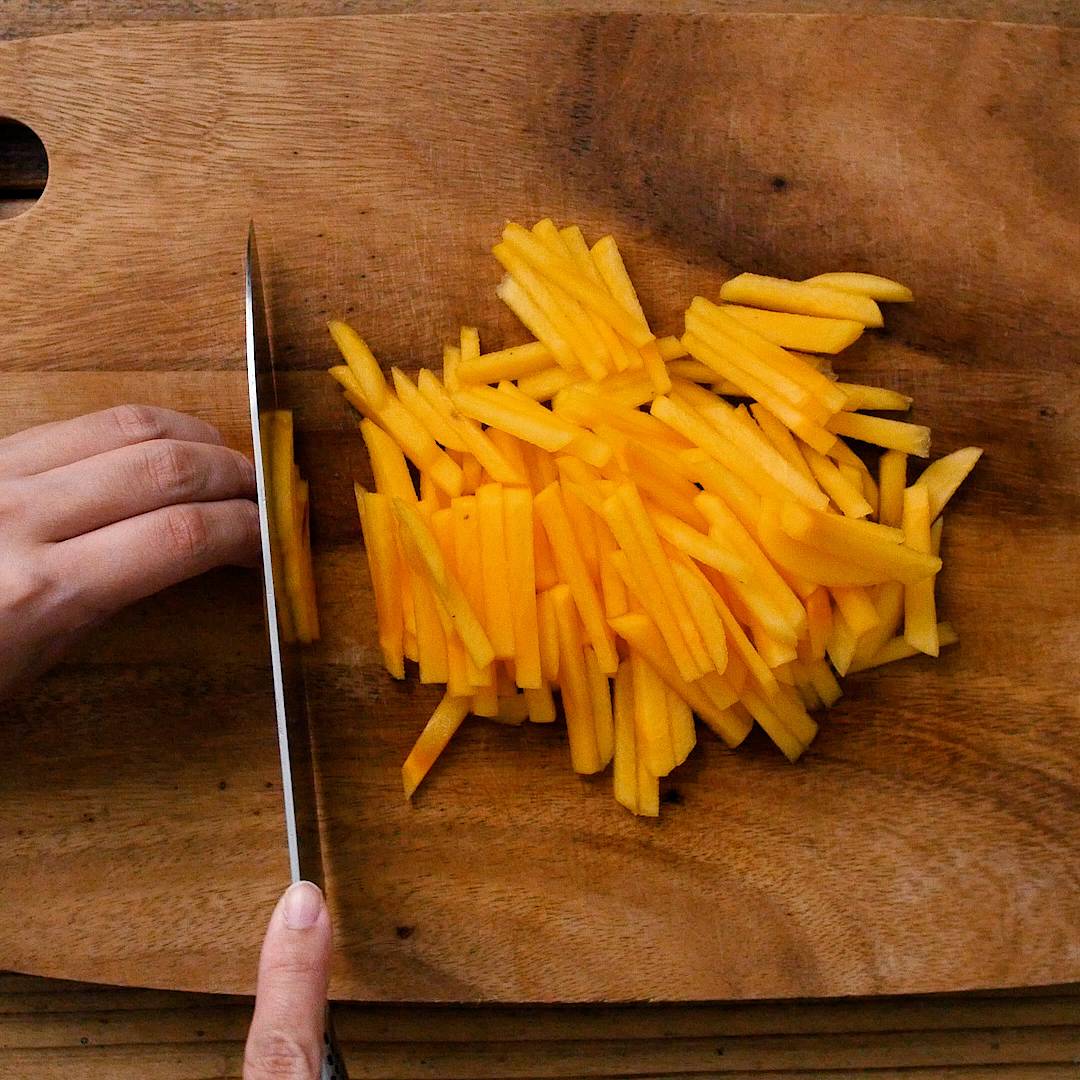柿は細切りにします。