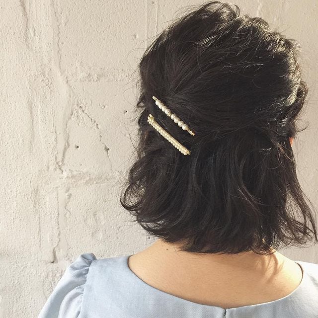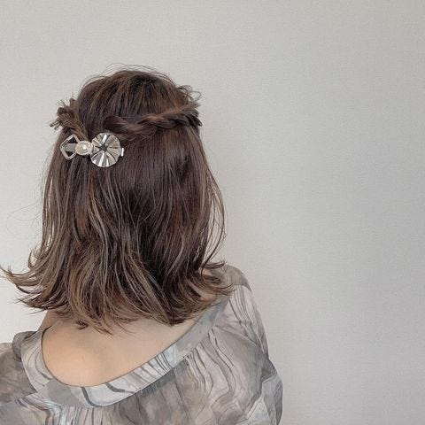 ミディアムヘアの女性にも、シンプルなハーフアップはおすすめのヘアアレンジです。