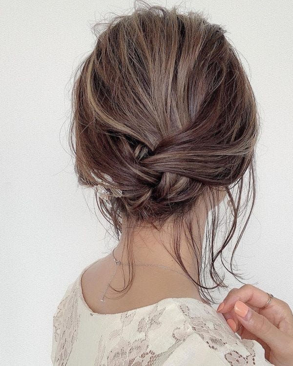 短い毛束のあるショートスタイルでは三つ編みの編み込みは難しいですが、2つの毛束で作るロープ編みなら自分でもかんたんにできますよ。