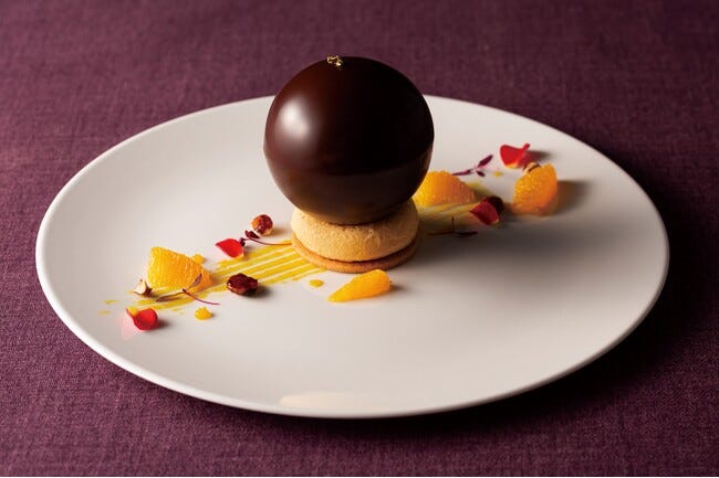 (デザート) スフェール ドゥ ショコラ オレンジのマーマレードと温かいミルクソース