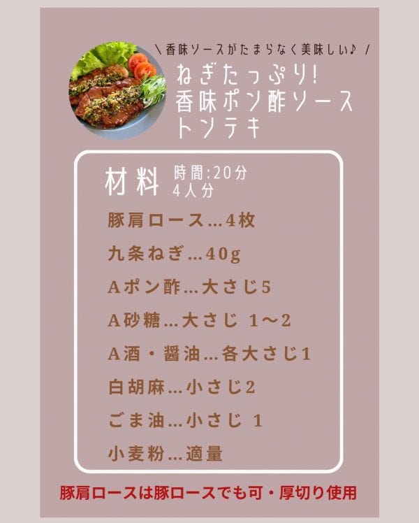 いつもは玉ねぎを使って玉ねぎソースやけど今回は私が大大大好きなねぎポンソースのトンテキを作ったよ〜!