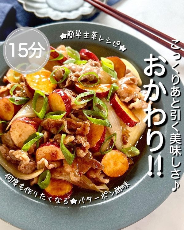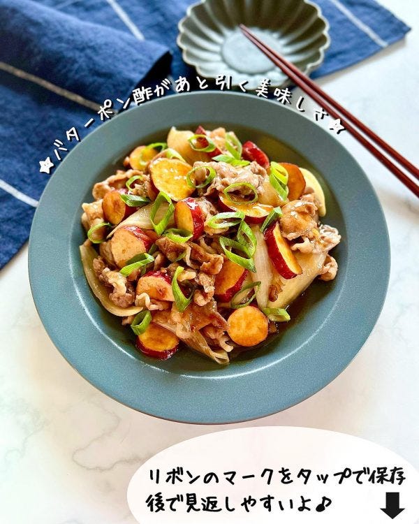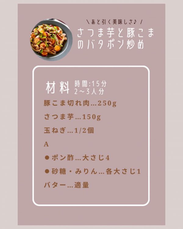 さつま芋と豚こまのバタポン炒め