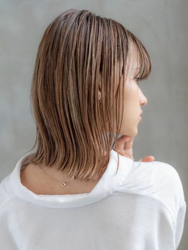 ミディアムレングスのレイヤーボブに、軽い質感が出せるシアーベージュを合わせています。