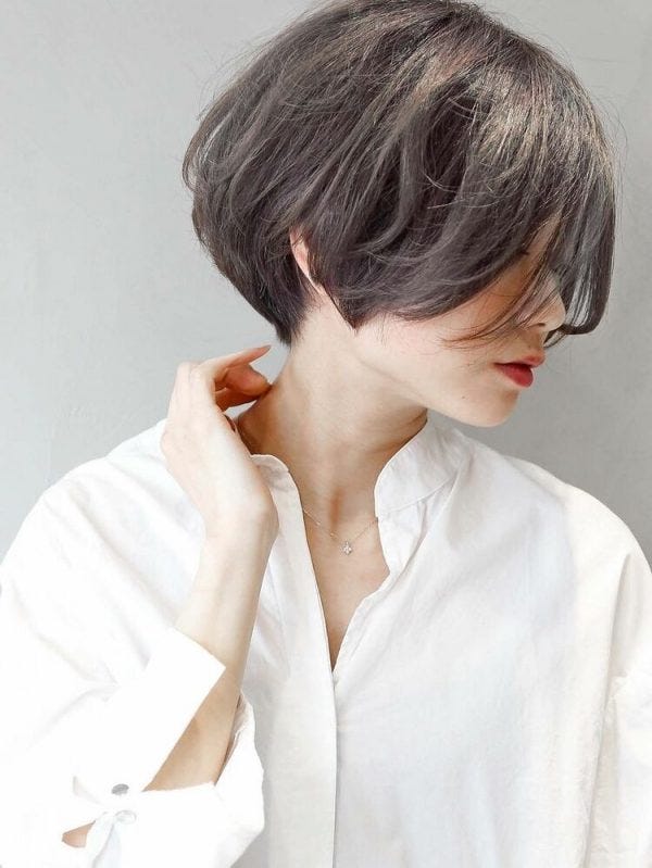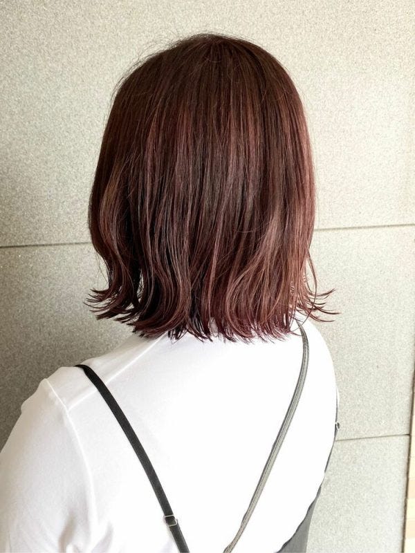 こちらは、落ち着きを感じさせる暗めのカシスピンクのヘアカラー。コンパクトなミニボブを、大人っぽく見せてくれます。