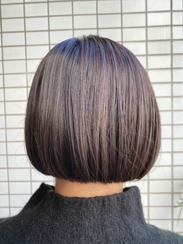 こちらもラベンダーグレージュのヘアカラーを取り入れた大人ボブです。