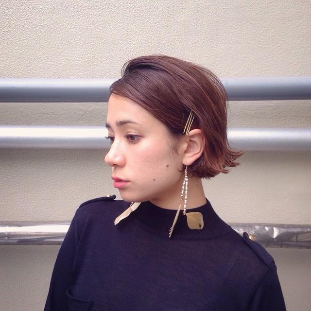 ピンをつけることでショートでもボリューム感の調節がしやすくなり、アクセントにもなっておしゃれですよ。