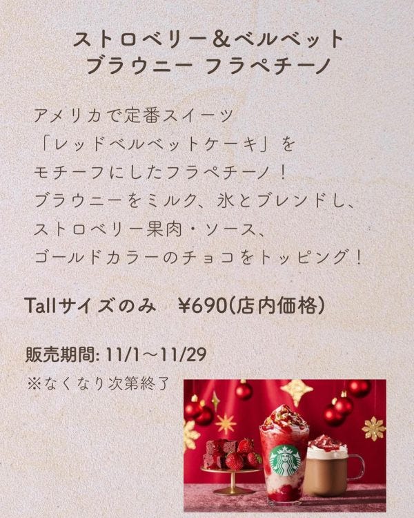 11/1発売のストロベリーandベルベットブラウニーフラペチーノが美味しすぎる◎