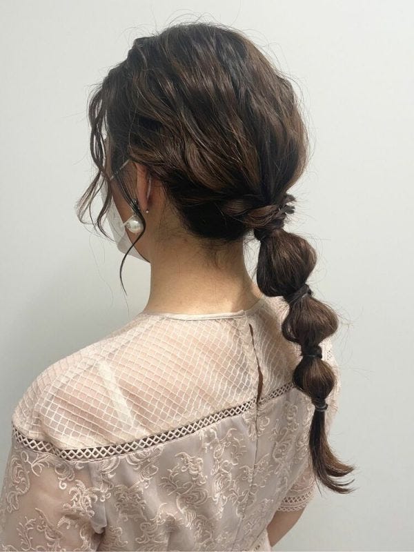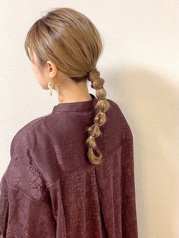 玉ねぎ風アレンジをした結び目も1つずつ毛束を巻き付けてゴムを隠すことで、ゴムだけの簡単スタイルも手が込んでいるように見えるでしょう。