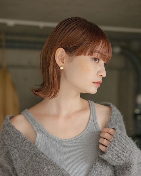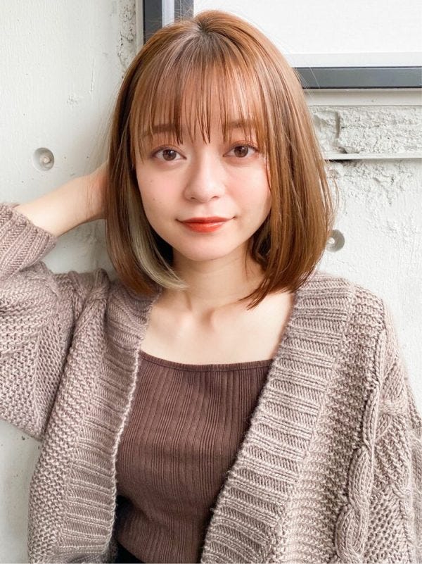 透け感のある流し前髪で曲線をプラスすると、顔タイプキュートさんの顔とバランスがとりやすくなります。ボブの長さで印象も変化しますよ◎