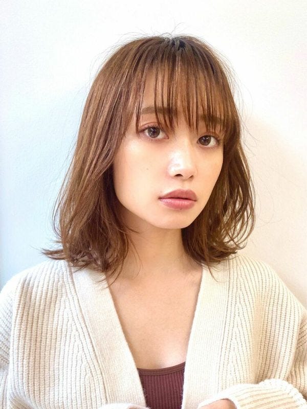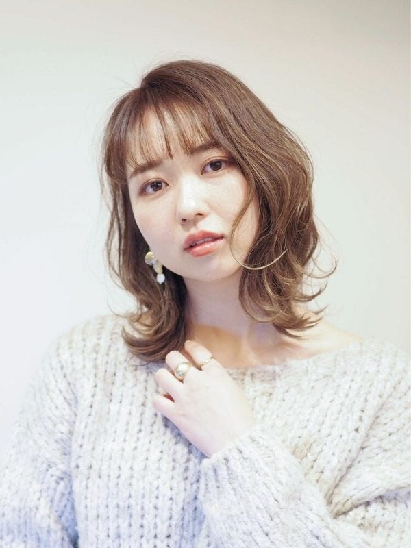 ハチ張りさんに似合う長め前髪のヘアスタイルであり、ふんわりと丸みがあるシルエットでハチ張りをカバーできますよ。