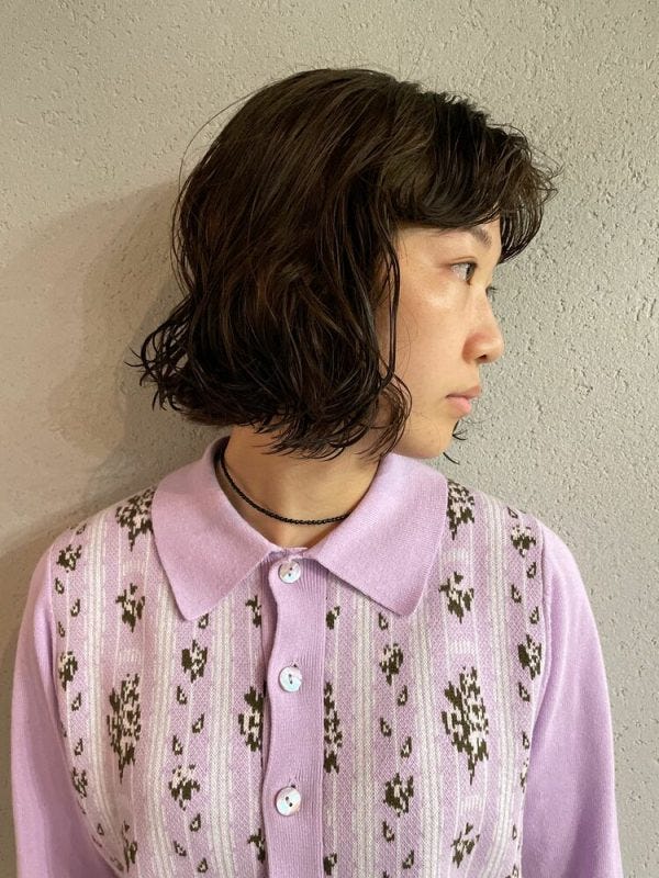 くせ毛ではないハチ張りさんは、毛先にかけて動きが出るようにパーマをかけてあげると、ハチ張りさんに似合うボブになりますよ。
