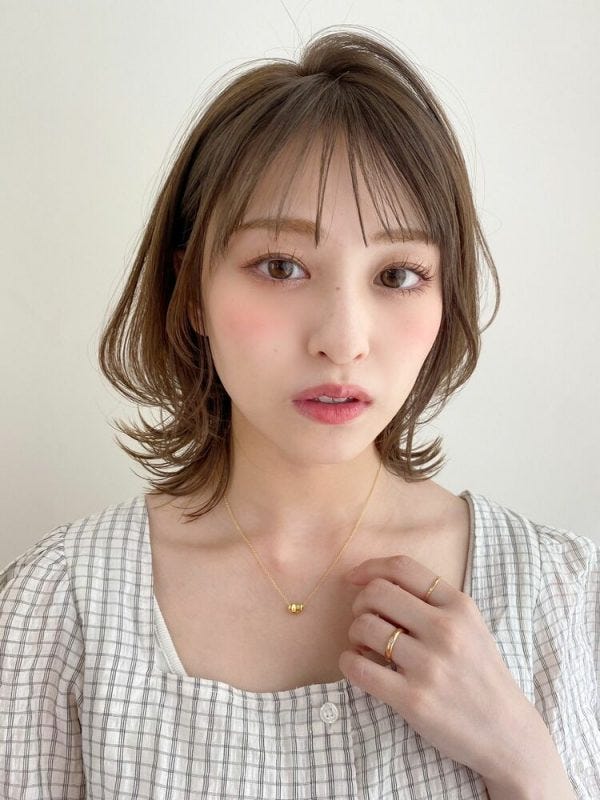 伸ばしかけミディアムでもおしゃれに仕上がるヘアスタイルであり、毛先に動きがあってハチ張りさんにも似合います。
