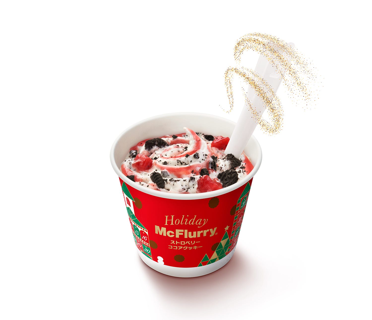 「マックフルーリー®」は、ミルクリッチなとろーりソフトクリームに、トッピングやソースをミックスし、高速で混ぜ合わせることで、なめらかな口当たりとユニークな食感を楽しめるマクドナルドの人気定番スイーツ。今回登場するのは、マクドナルドがホリデーシーズンを華やかに彩るためにこだわり抜いた、マックフルーリー®史上最高レベルの自信作“ホリデーマックフルーリー®”。