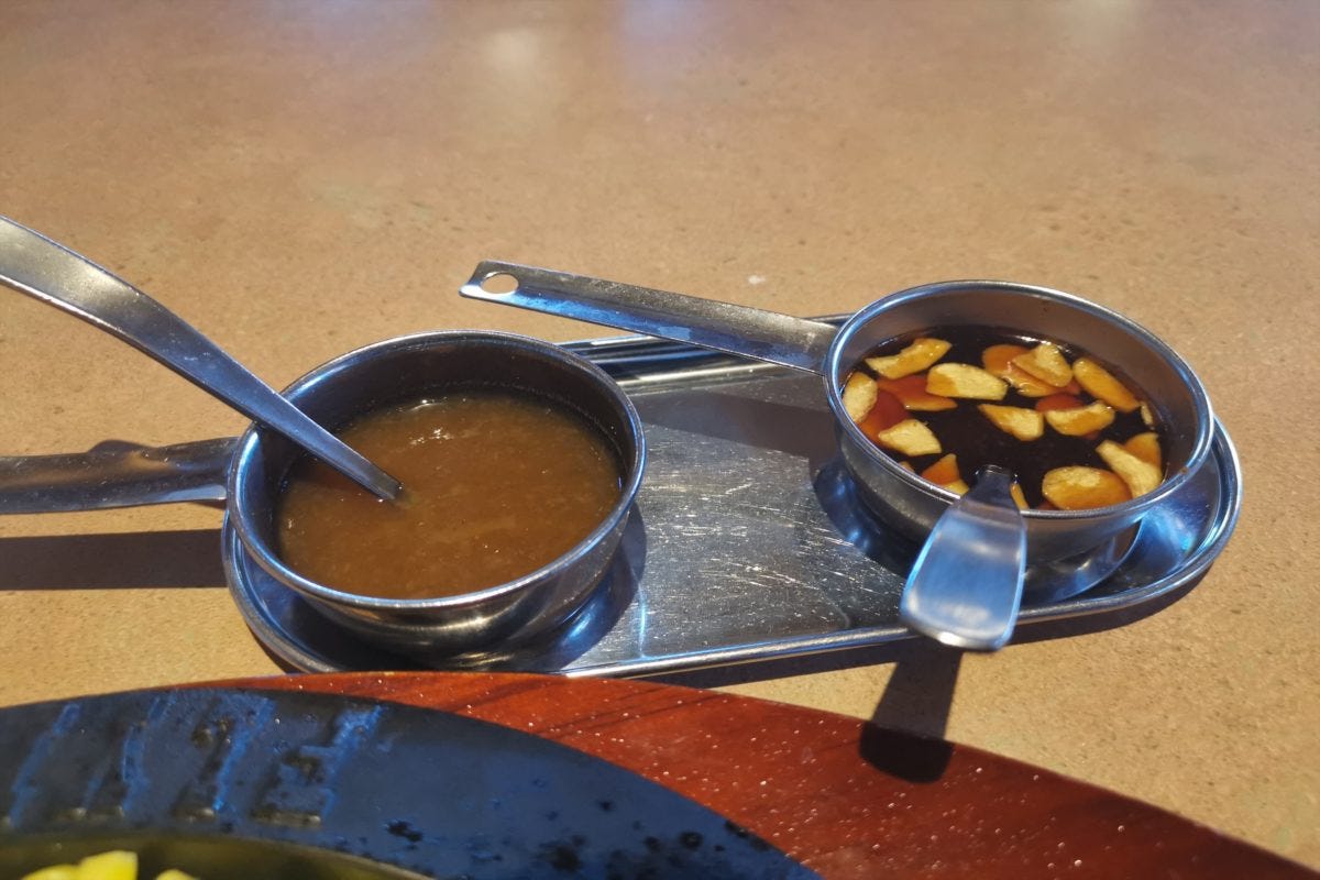 ソースは2種類もらえるので、どちらでも好きなほうをかけて食べよう。足りなくなったら追加することも可能だ。ちなみに記者のお勧めは、それぞれ交互に味わいつつ、最後に混ぜて食べると美味しくいただくことができる。