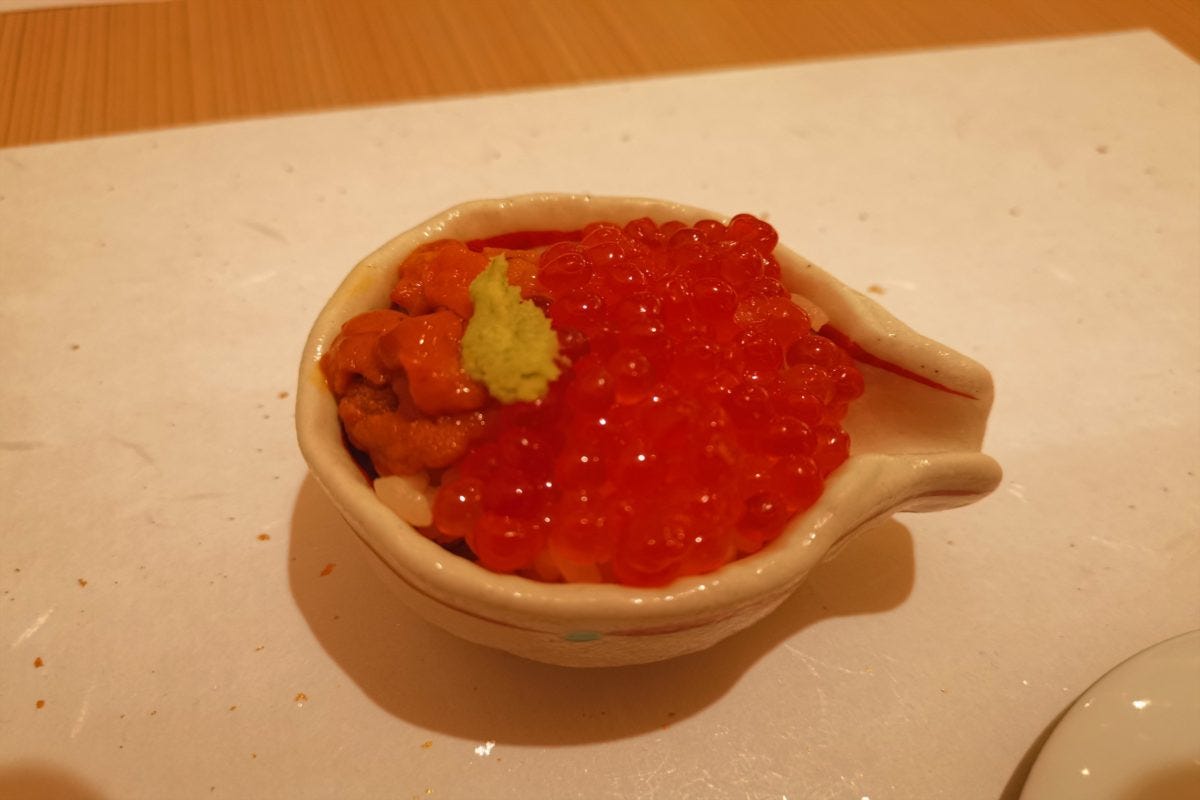 新宿で本格的な寿司店でこの値段で食べられることだけでも驚きだが、いくらと雲丹の寿司や穴子の蒸し鮨など、コースの料理もしっかり作ってあり非常に美味しい。