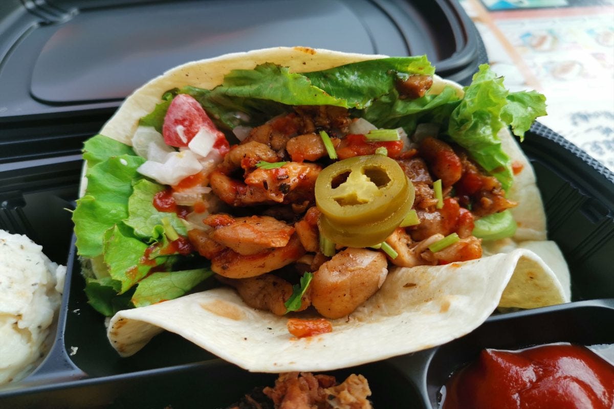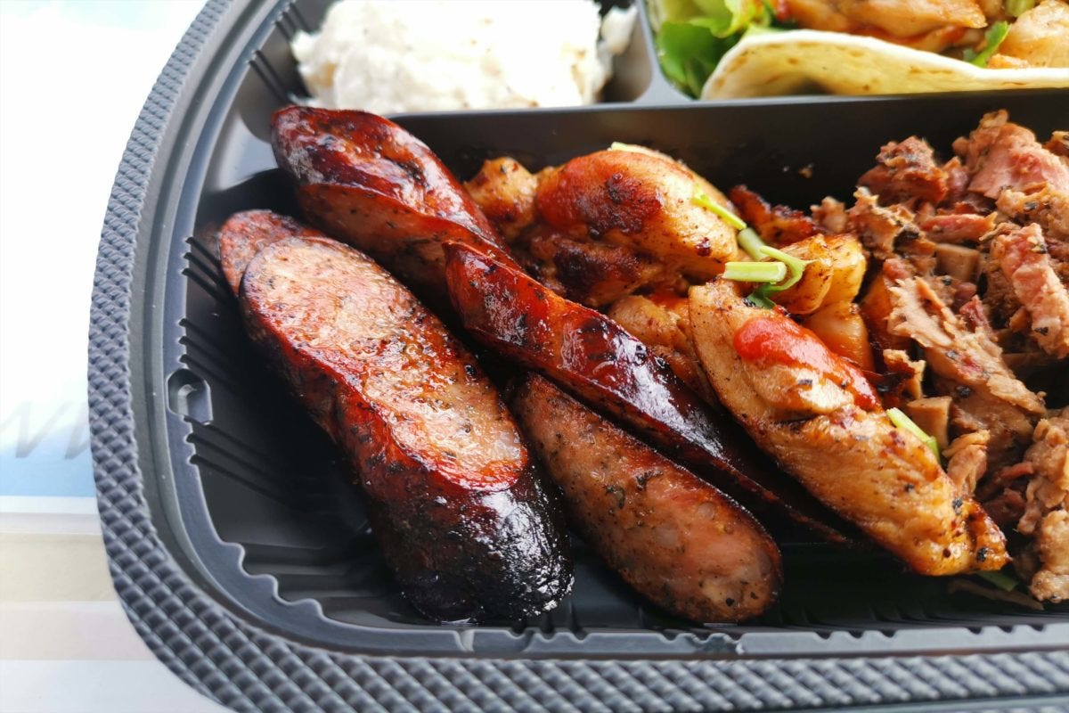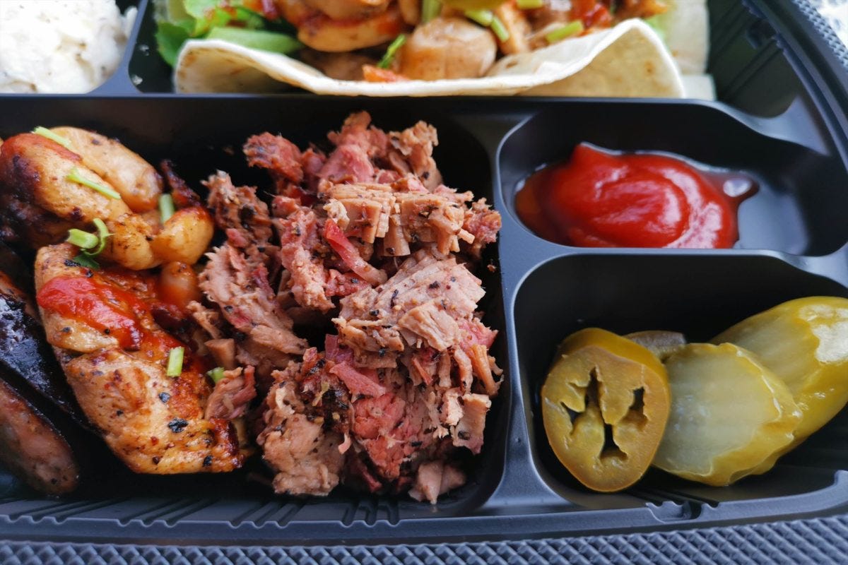 注文したのは、ブリスケットやソーセージ、チキンやタコス、ポテトサラダなど、BBQメニューがひと通り楽しめる「テクスメクスプレート」を注文。