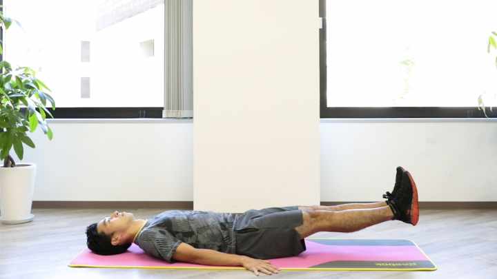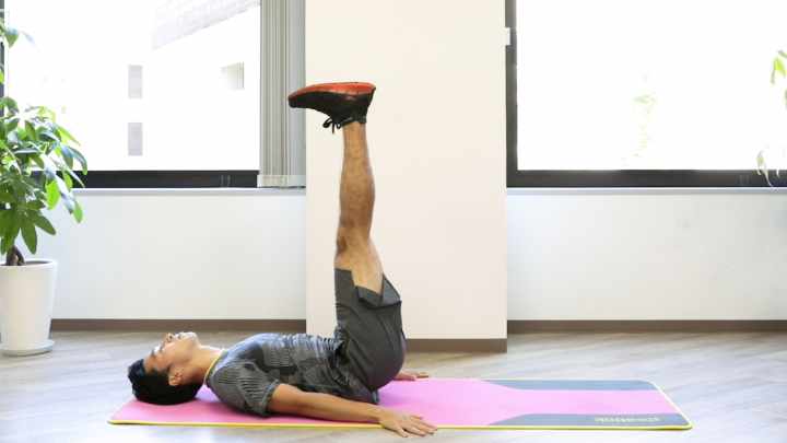 正しいやり方 仰向けの状態で両足を伸ばす 両足を浮かせ、かかとをくっつける かかとを離さずに、地面と太ももが90度になるまで上げる 地面ギリギリまで、足をゆっくりと下ろして止める