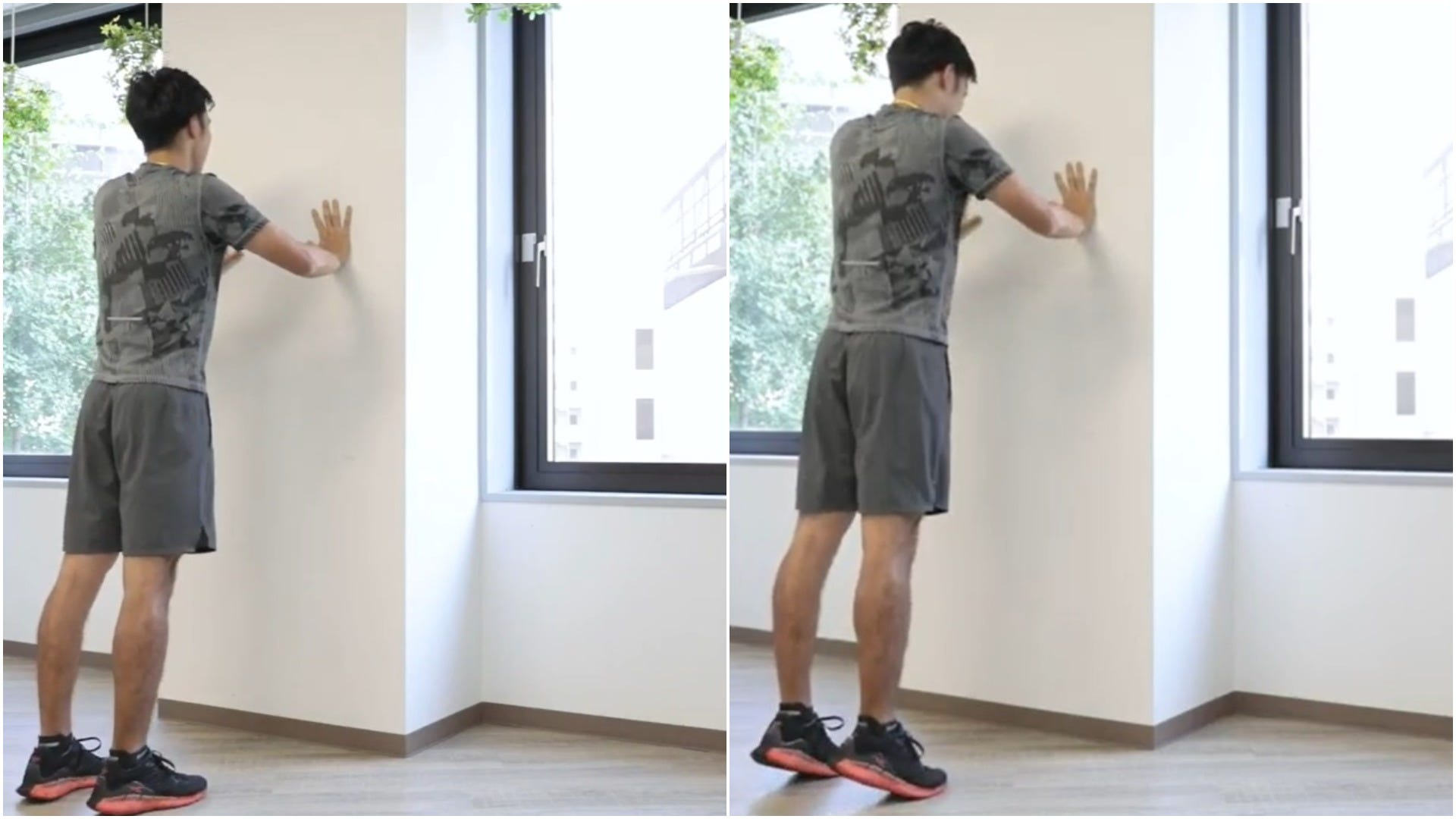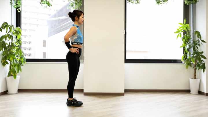 正しいやり方 肩幅に足を開いて立つ かかとをできるだけ上げて、つま先立ちになる 重力に抗いながらかかとを下ろす
