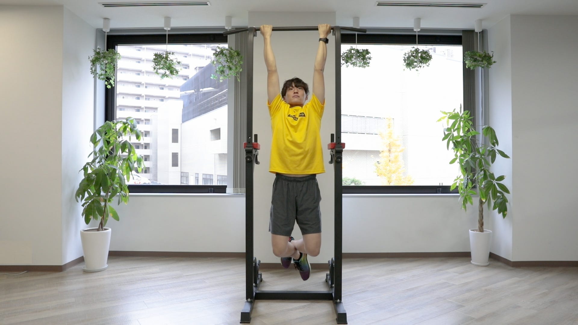 正しいやり方 肘を伸ばしてぶら下がる まっすぐに反動を使わずに顎がバーの上までくるように上げる 上がりきったらスタートポジションに戻す