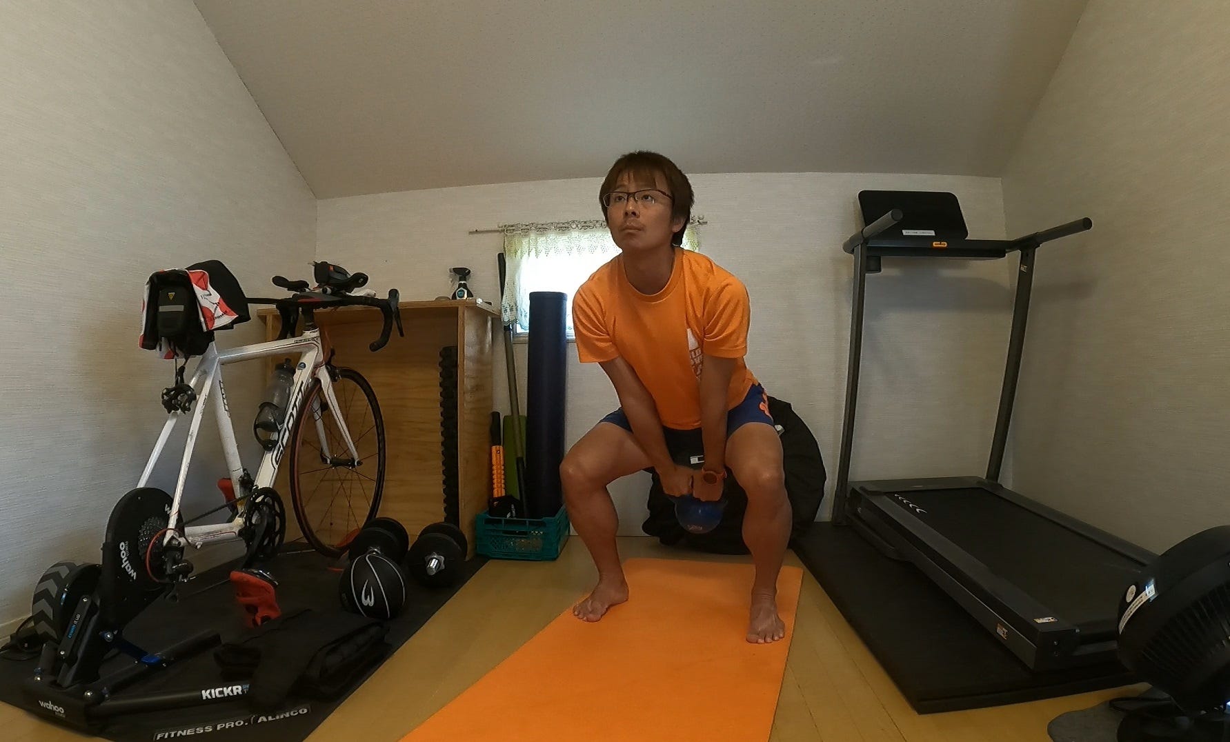ここからはふくらはぎ(ヒラメ筋)を鍛えるトレーニングに移ります。