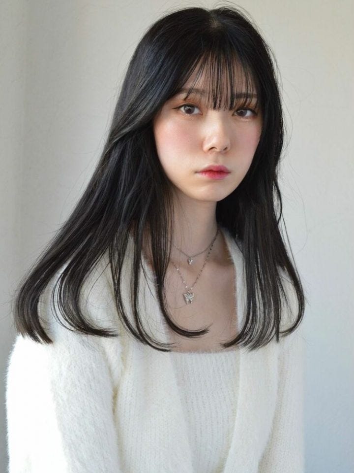 30代でも挑戦しやすい落ち着いた雰囲気の韓国風ロングヘアで、前髪もシースルーバングなので今っぽさを演出できますね。