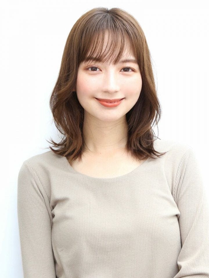 シースルーバングのミディアムにするなら、トレンドの外ハネスタイルにするのもおすすめです。