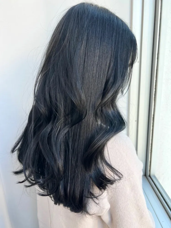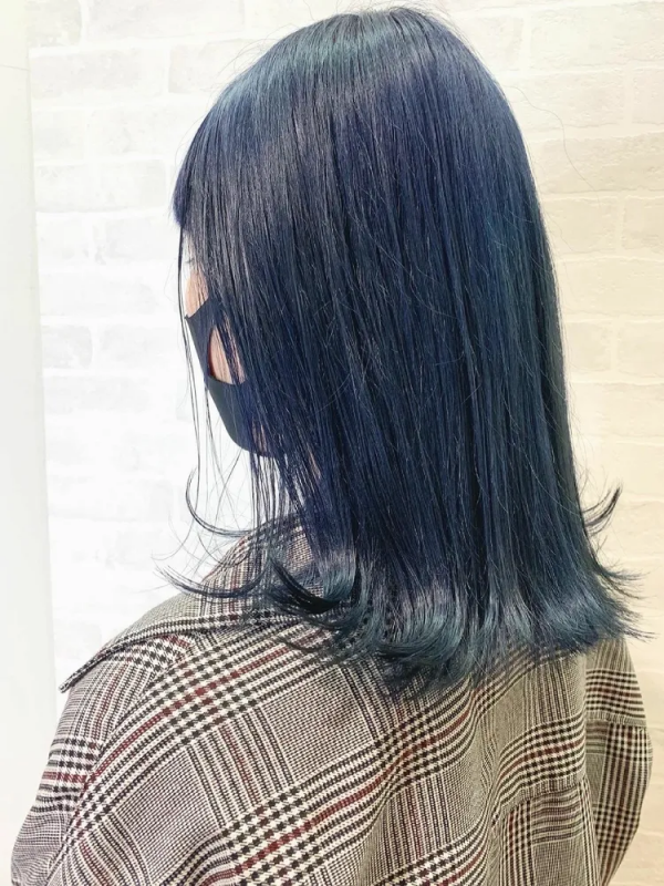 髪の毛をブリーチしたくないという方でも、ネイビーならツヤがあってきれいな黒髪に見えるヘアカラーに仕上がります。