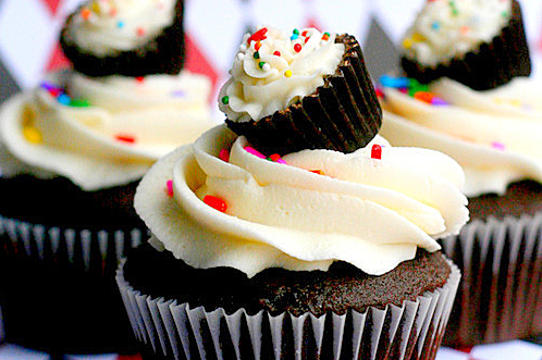 楽天レシピ:「大きな苺の誕生日カップケーキ 」より