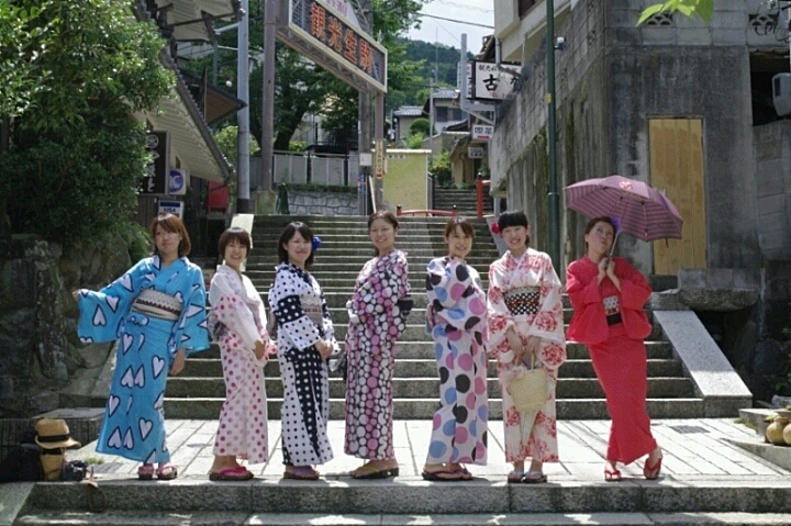 湯の山温泉の10の宿や温泉を利用し、色浴衣を着用した人がロープウェイ等の様々なサービスが受けられるイベントです。風情ある景色は浴衣に良く合う。