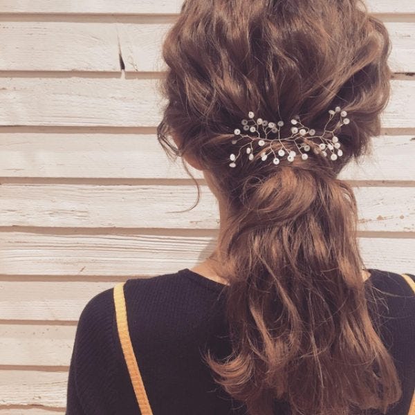 どんな髪型でも、ヘアゴムやヘアピン、バレッタなどヘアアクセサリーをつけて華やかさを足すと素敵に見えます。