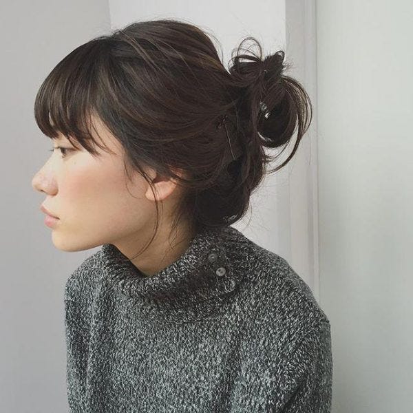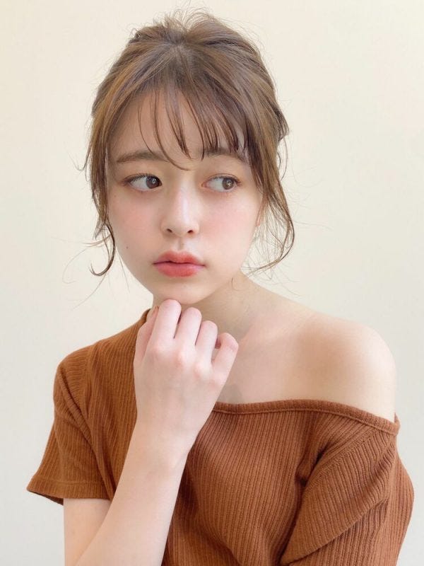 手ぐしでまとめたようなざっくり感がおしゃれで、顔周りのおくれ毛も小顔効果抜群。