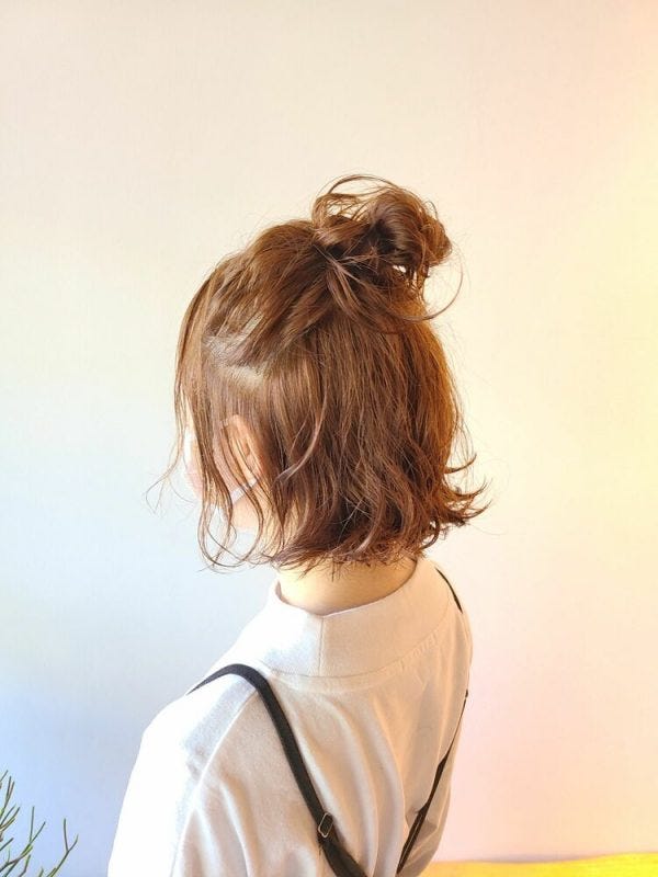 お団子が可愛いボブヘアスタイル