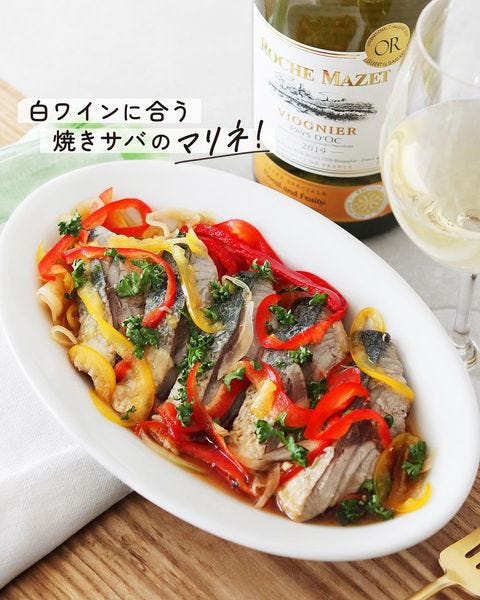 こちらの焼きサバと野菜で作るマリネは、白ワインビネガーと砂糖、醤油、塩で作る甘じょっぱい味わいで、野菜や魚がモリモリ食べられるレシピです。