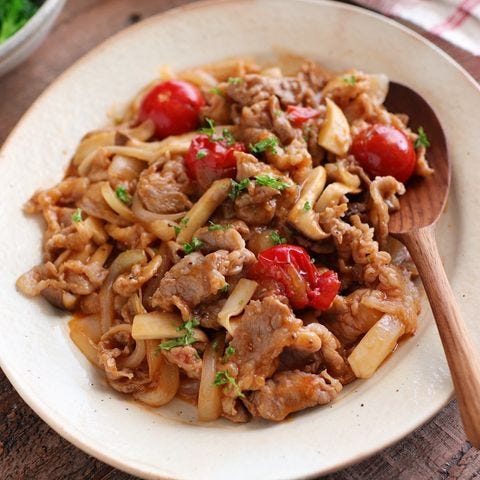 豚こまや自宅にある調味料でパパっと簡単に作れるので、忙しい日にも活躍してくれるはず。濃いめの味付けで、野菜たっぷりのコブサラダとも合いますよ。