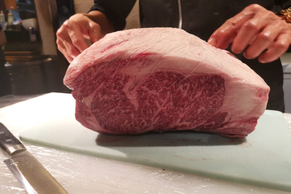 福島牛雌A4のリブロース。橋本さんいわく「仕入れ値に対しての品質が非常に良いですね!」と絶賛。いつも日本一の肉を取り扱う橋本さんが絶賛するのであれば、ほぼ間違いなくコストパフォーマンスは日本一なのだろう。