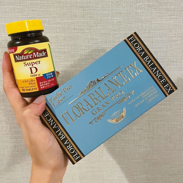 エステプロラボの乳酸菌とネイチャーメイドのビタミンDサプリ。免疫力アップのために、このあたりもバランスをみて摂取。
