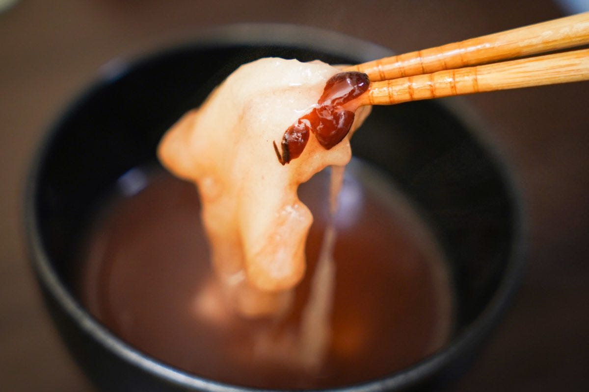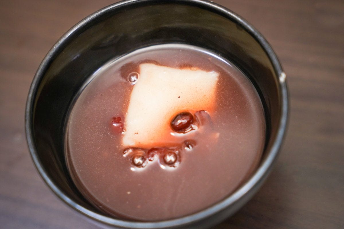 早速汁を飲んでみると...うまい! 程よい甘さにまろやかな口当たり、小豆もしっかりと食感がありこれぞ求めていた味だ。そして肝心の餅を確認すると...
