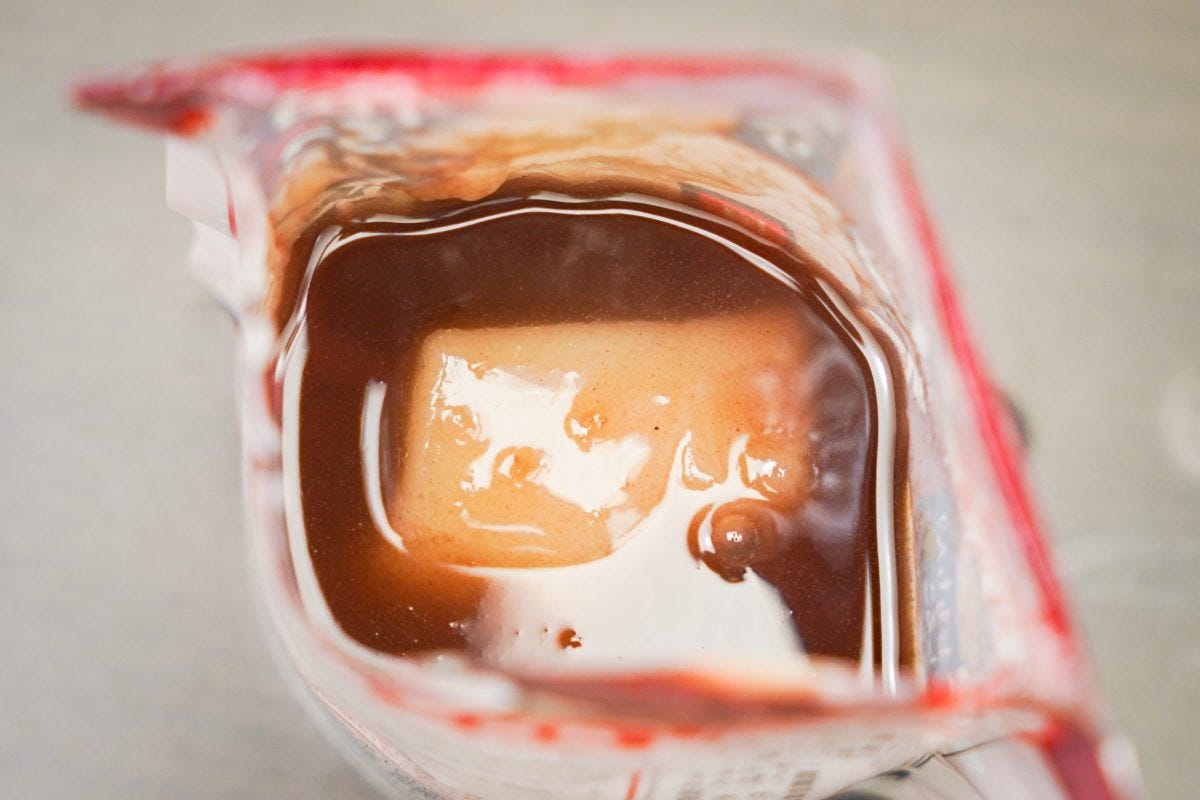 袋のまま食べることができれば最高だが、側面が熱くなりやけどしたりこぼしてしまう危険があるため、食べる際は容器に移す必要がある。