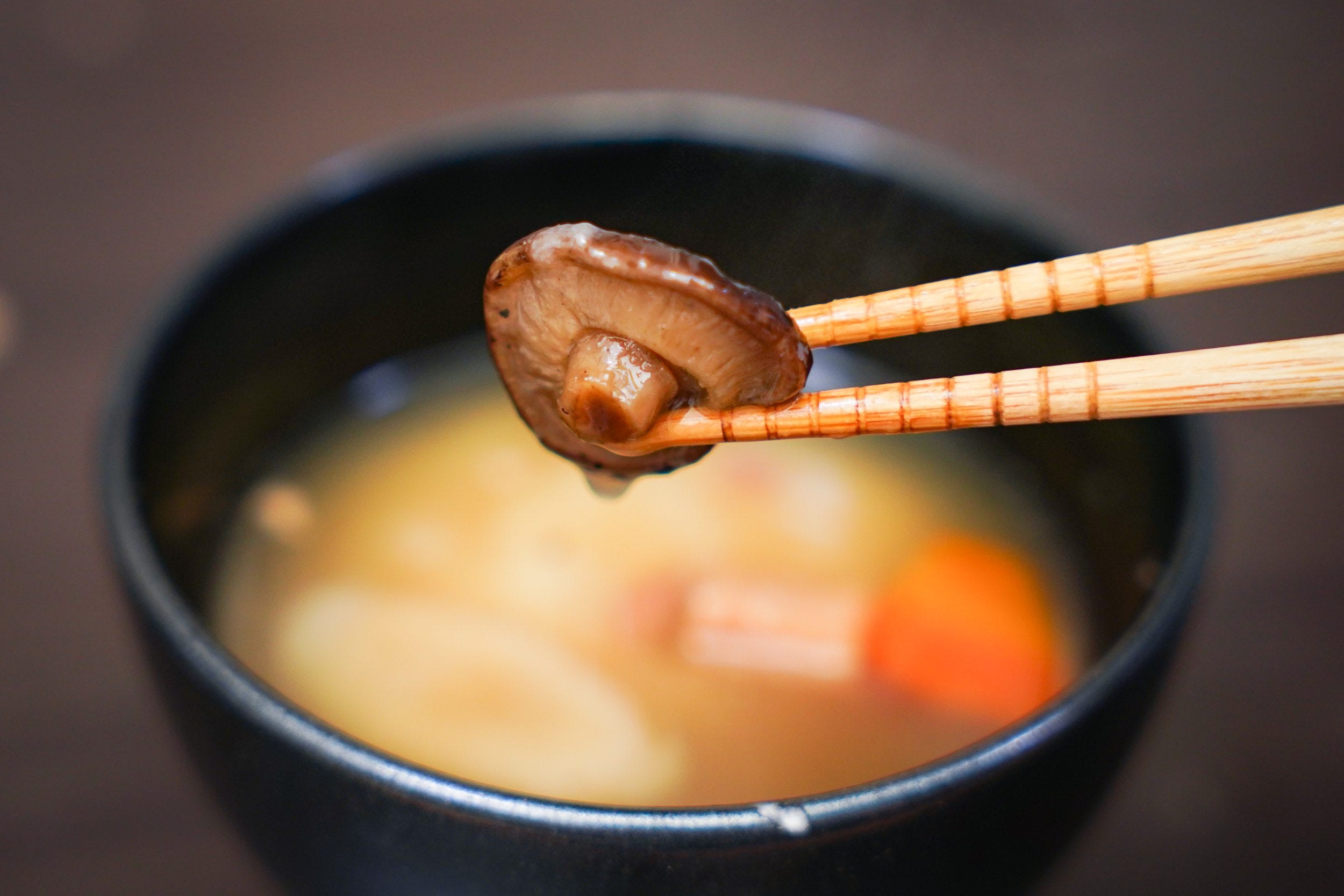 加熱が完了したら、しっかりと熱々のおしるこが完成していた。ある程度の大きさの餅が2つも入っているのは嬉しい。では、餅にちゃんと火が入っていているかチェックしていこう。