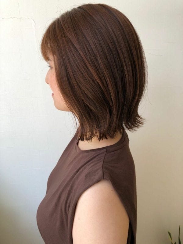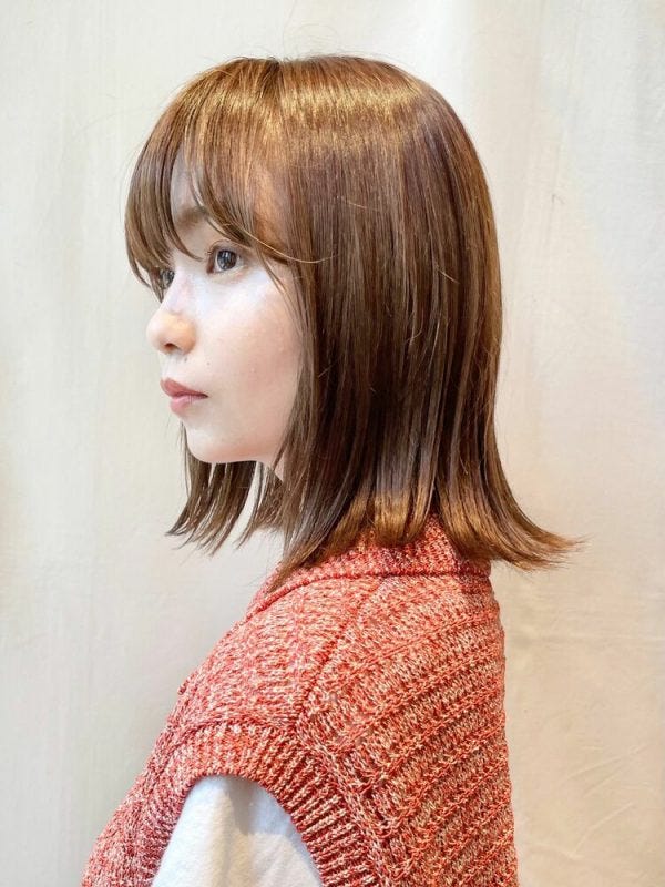 こちらは、マロンブラウンのカラーが大人可愛い印象のベルボブです。肩につく程度のミディアムレングスの長さがあるので、アレンジも手軽にできます。