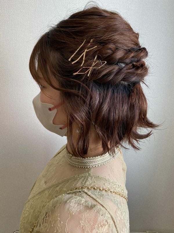 髪が短い部分は、ピンやバレッタなどを使ってまとめるとよいでしょう。