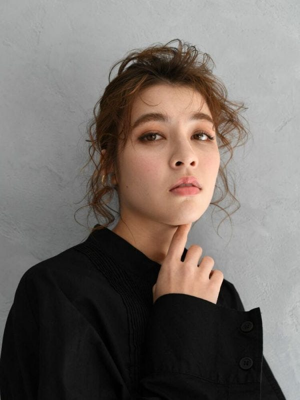 後れ毛にスタイリング剤をなじませて軽く巻くと、おしゃれ度もアップ。前髪を薄めに作り、抜け感を強調しましょう。